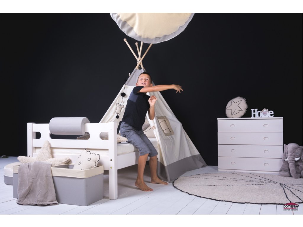 Jednolůžko dětské řady DOMINO je vyrobeno z vysoce kvalitního smrkového nebo bukového (cinkového) masivu.