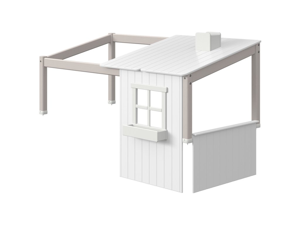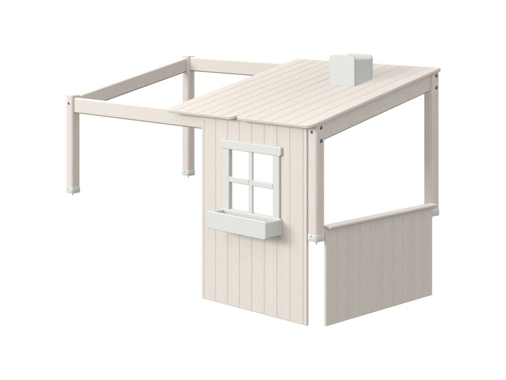 Postavte 1/2 dům na postel CLASSIC. Útulný domeček zve ke hře a budování jeskyní s přáteli i samotnému klidnému okamžiku. Polovina klasického domu je kompatibilní s jednolůžkovým a středním lůžkem Classic. Klasický dům má okno a otvor, skrz které se dítě může plazit do postele. Klasický dům je víc než jen postel, protože pro dítě v místnosti vytváří soukromí. Přidejte závěsy a girlandu a ještě více to zpříjemněte. Domek je k dispozici ve dvou barvách a je vyrobena z masivního borového dřeva a MDF. Doporučený věk: Od věku 3 let.
