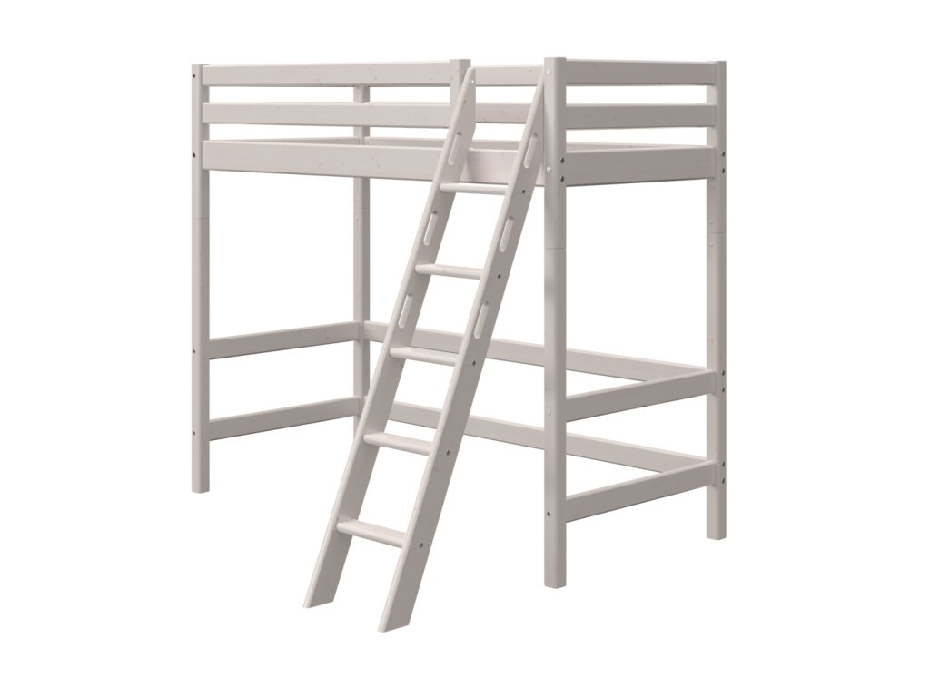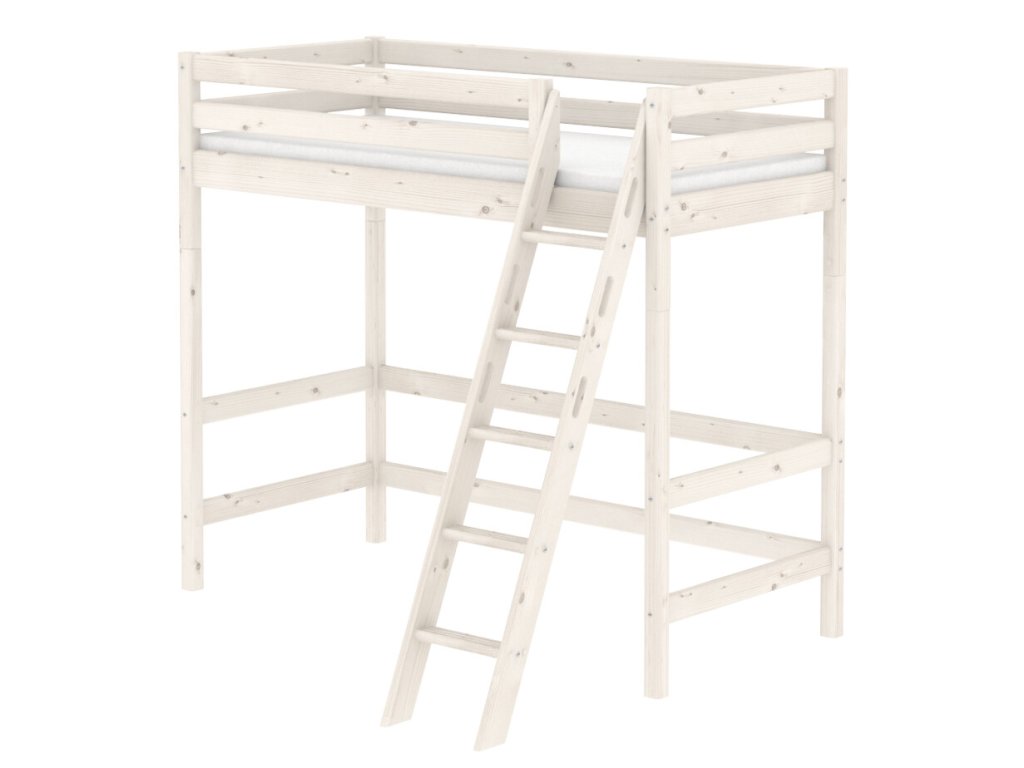 CLASSIC vysoká postel se šikmým žebříkem. Žebřík má protiskluzové stupně a intregrované rukojeti a lze jej umístit na oba konce postele. Prostor pod postelí je ideální pro skladování nebo studovnu. Kolekce Classic roste s dětmi. Postel je vyrobena z masivního borového dřeva. Doporučený věk: Od 8 let.