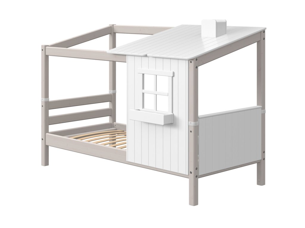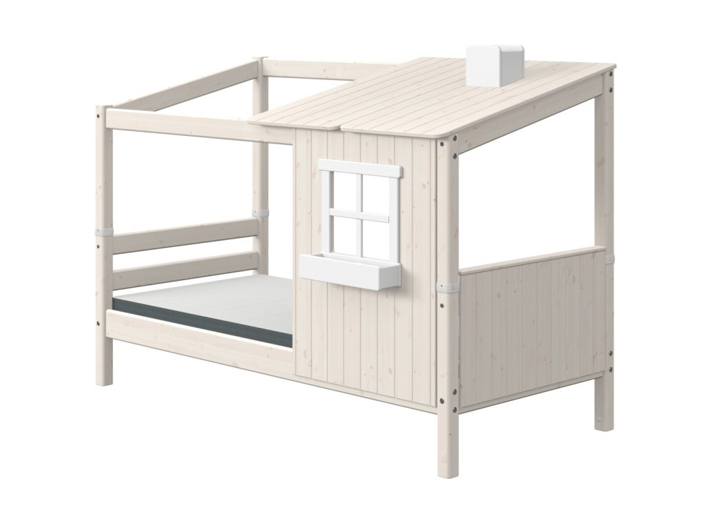 Postavte 1/2 domu na posteli CLASSIC. Útulný domeček zve ke hře a budování jeskyní s přáteli i samotnému klidnému okamžiku. Polovina klasického domu je kompatibilní s jednolůžkovým a středním lůžkem Classic. Klasický dům má okno a otvor, skrz které se dítě může plazit do postele. Klasický dům je víc než jen postel, protože pro dítě v místnosti vytváří soukromí. Přidejte závěsy a girlandu a ještě více to zpříjemněte. Postel je k dispozici ve dvou barvách a je vyrobena z masivního borového dřeva. Doporučený věk: Od věku 3 let.