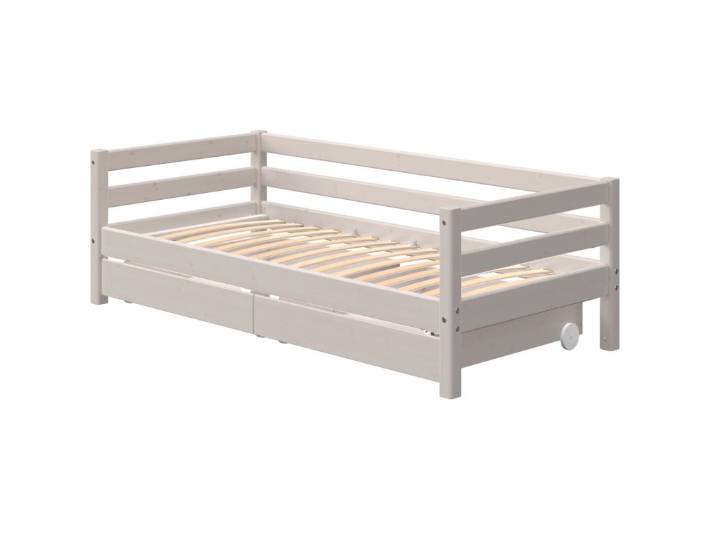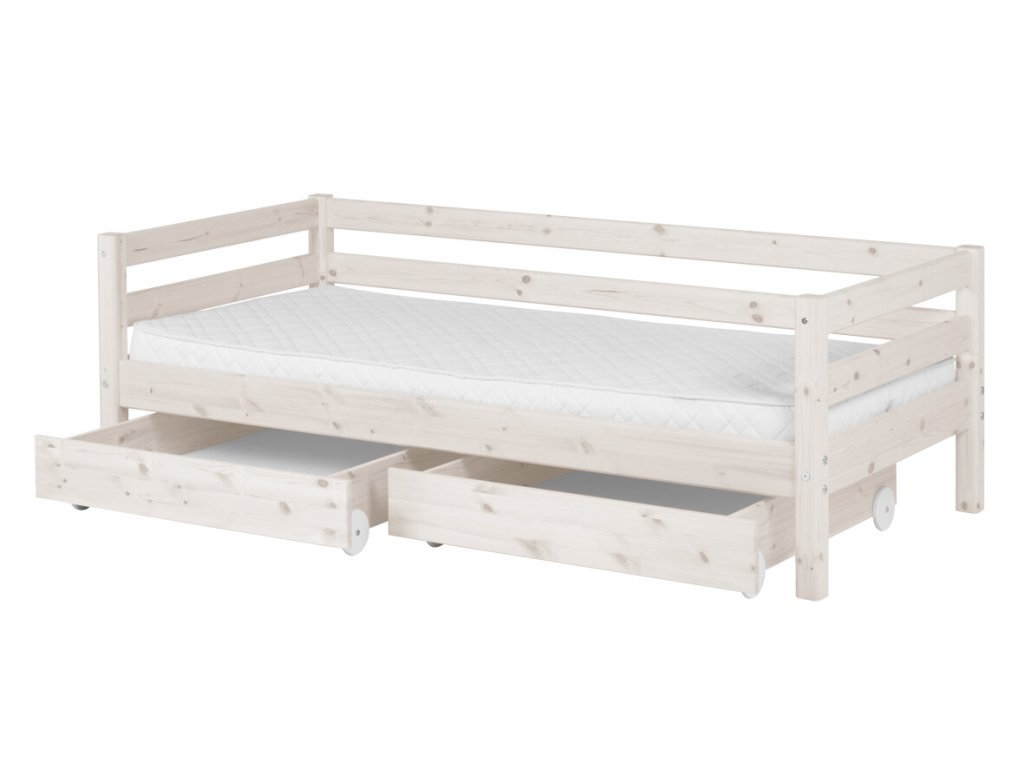 Postel CLASSIC s opěradlem, hlavou a nohou. Použijte ji pro vaše dítě, které chce postel jako pohovku. Postel má klasický a skandinávský design a je k dispozici ve dvou barvách. Se zásuvkami pod postelí je snadné ukládat dětské povlečení nebo hračky. Kolekce Classic roste s dětmi. Postel je vyrobena z masivního borového dřeva. Doporučený věk: Od věku 3 let.