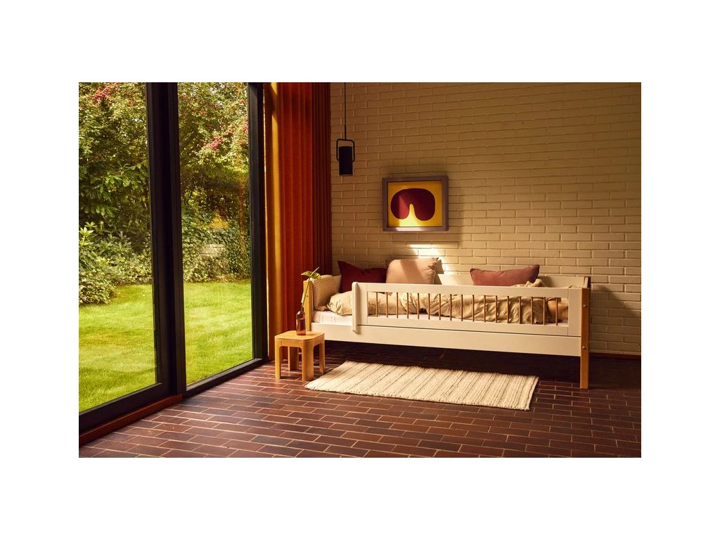Jednolůžko NOR s čelem u hlavy i nohou, se zadní a přední 3/4 zábranou "tyčky" zábranou. Použijte postel pro dítě, které vyrostlo z juniorské postele. Přidejte bezpečnostní zábranu, abyste poskytli dítěti extra bezpečí. Nebo použijte postel pro dospívající a vytvořte v místnosti příjemnou atmosféru. Přidáním vyšších nohou k posteli vám umožní přeměnit jednolůžko na středně vysoké nebo vysoké lůžko. Postel je vyrobena z vysoce kvalitní MDF a má nohy z masivního dubu. Doporučený věk: Od 3 let.