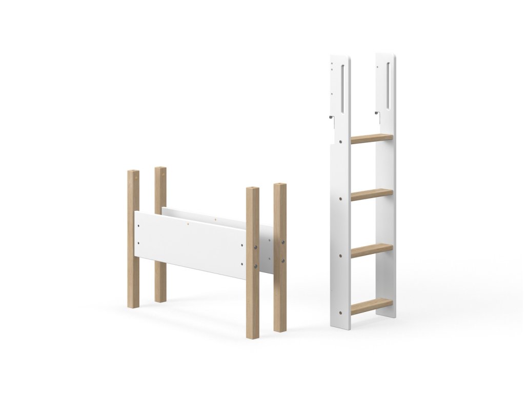 K jednolůžku NOR přidejte rovný žebřík a nohy a proměňte postel v polovysokou postel. Žebřík má protiskluzové schůdky a integrovaná madla. Žebřík a nohy jsou vyrobeny z MDF a masivního dubu.