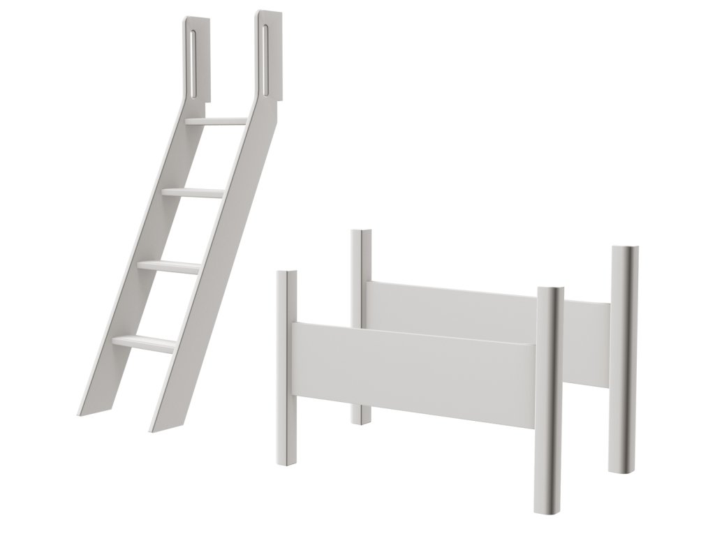 K jednolůžkové posteli přidejte šikmý žebřík a nohy a proměňte postel v polovysokou postel. Žebřík má protiskluzové schůdky a integrovaná madla. Žebřík a noh jsou vyrobeny z MDF a masivní břízy.