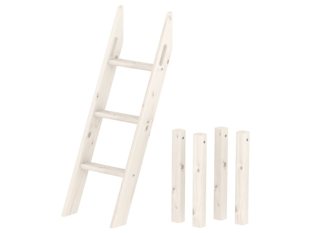 Šikmý žebřík a nohy pro CLASSIC střední postel. Přidejte nohy a žebřík na klasické jedno lůžko a přeměňte postel na středně velké. Žebřík má protiskluzové stupně a integrované kliky a je k dispozici ve dvou barvách. Žebřík je vyroben z masivního borového dřeva.