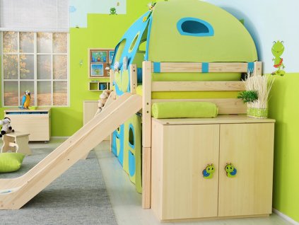 Hodiny a věšáky ve tvaru zvířátek, židličky, stolečky, nástěnky, přebalovací pult, dětskou židličku, dětskou ohrádku, úchytky k nábytku a tři velikosti boxů.