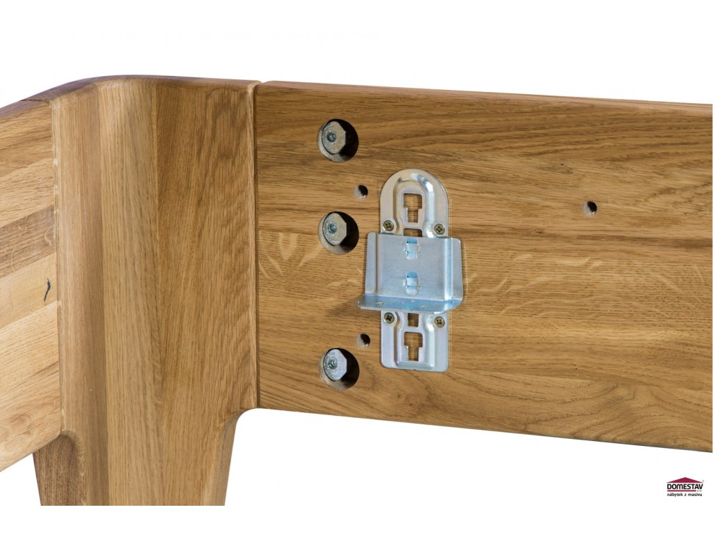 Postel Fantazie s nastavitelným oblým čelem je vyrobena z bukového a dubového masivu.