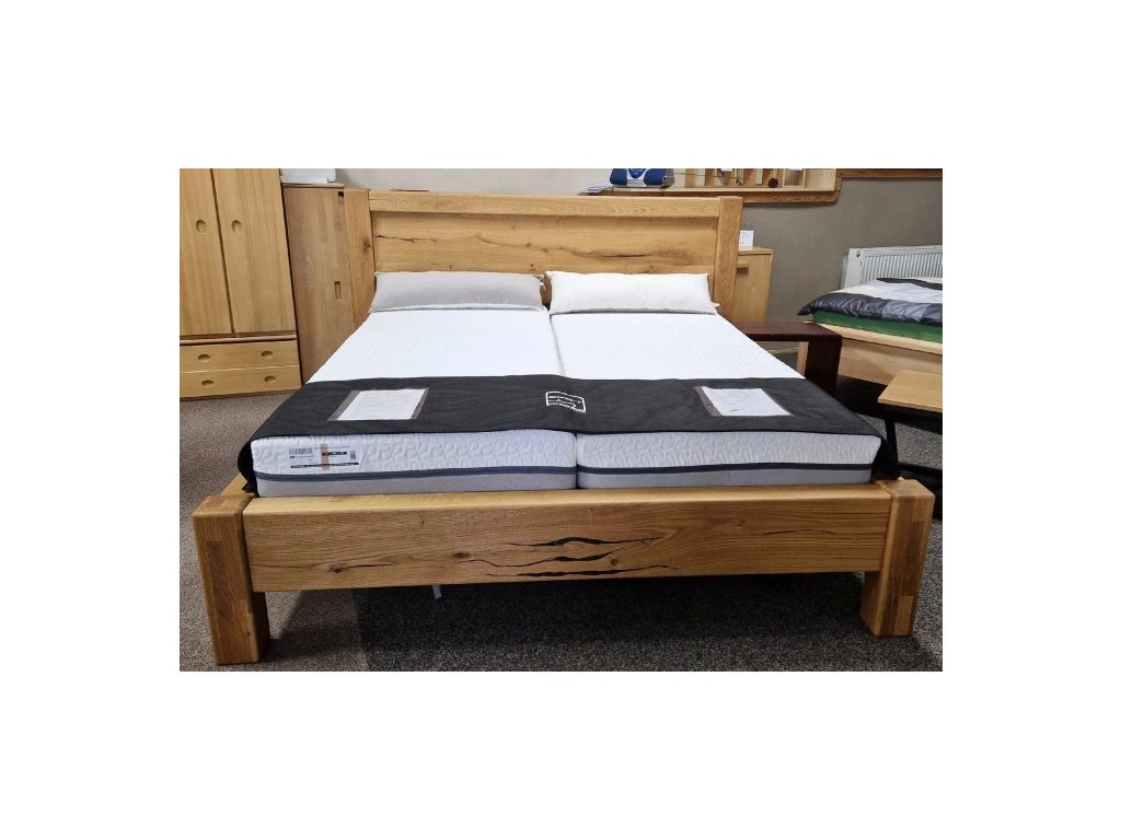 Tato velmi bytelná celomasivní postel je vyrobena z kombinace dubu průběžného, dub-cinkové spárovky a pevné dubové překližky.