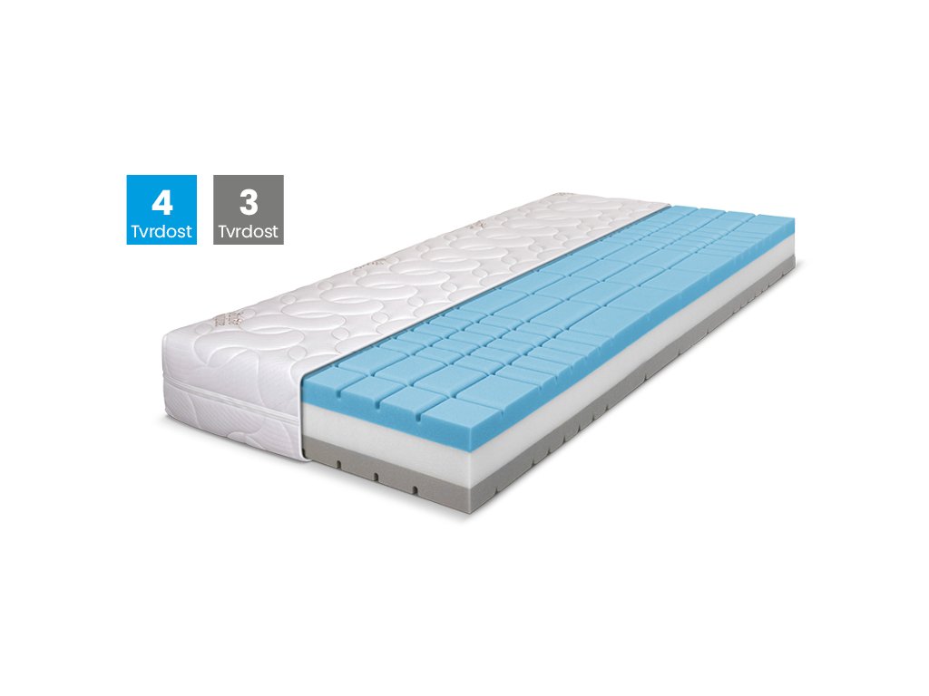 5-zónová oboustranná (partnerská) luxusní antidekubitní matrace z kvalitních studených pěn. Důmyslný průřez se strukturovaným povrchem v oblasti ramen, beder a pánve garantuje vynikající přizpůsobení se tělu a optimální proudění vzduchu, čímž zaručuje optimální spánkové prostředí. Antidekubitní průřez slouží jako prevence proti vzniku dekubitů - proleženin. Matrace je vhodná na pevný a polohovatelný lamelový rošt, je určena pro váhovou kategorii do 130 kg. Celková výška matrace v potahu Aloe Vera je cca 19 cm.