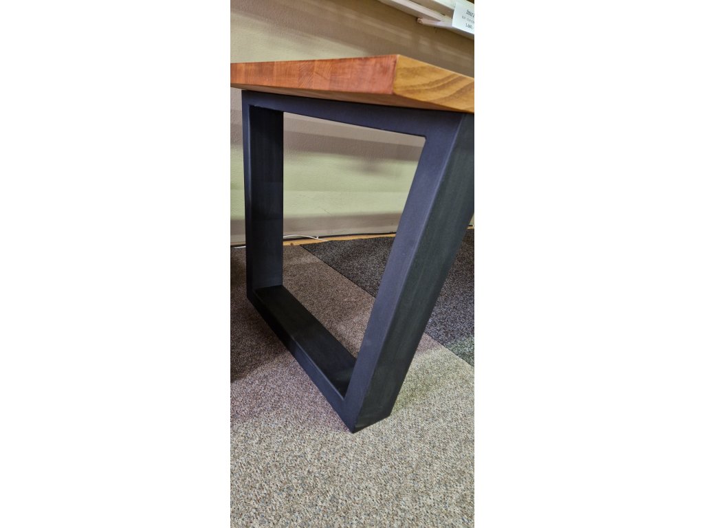 Jídelní stůl s masivní kovovu podnoží a bukovou deskou